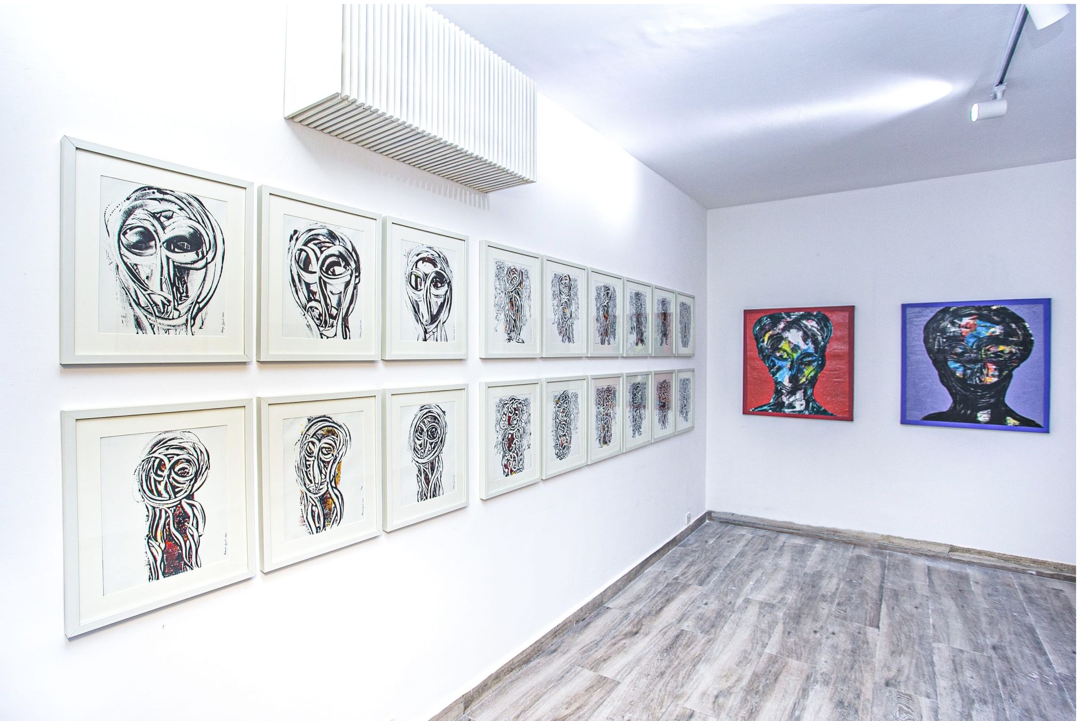 widley in colour compositions. Each figure has a dense compaction that resembles dreadlocks which dominate the negative space on either side