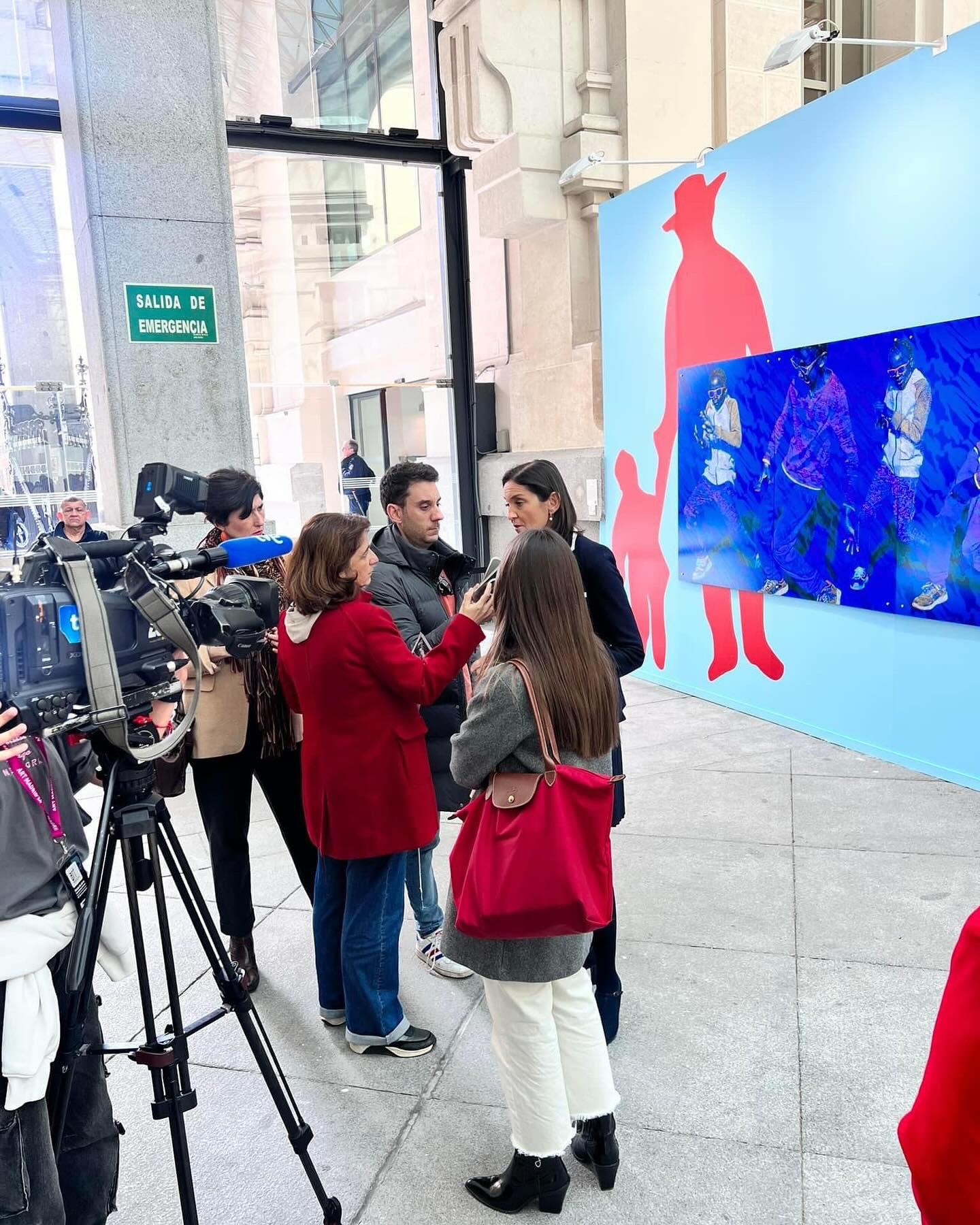 Alternation is installed at the entrance of Galería de Cristal of the Palacio de Cibeles, adjoining OOA Gallery’s booth at Art Madrid 2024. The triptych is accompanied by an outsized pictogram of a man and child, an emblematic motif in Mbugua’s paintings inspired by data visualisations on Nairobi’s metropolitan streets, synergising correlations between graphic symbology and life cycles across generations.